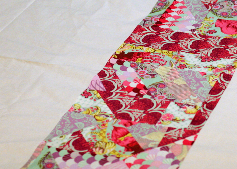 The piecing of the Tula Pink fabric is very improvisational, and I’m actually using a cream solid in this quilt. I’ve never worked with cream before, I’m usually a big fan of bright white. But it really is more of a winter white in the Parisville fabrics, so I think this is a pretty nice compliment.