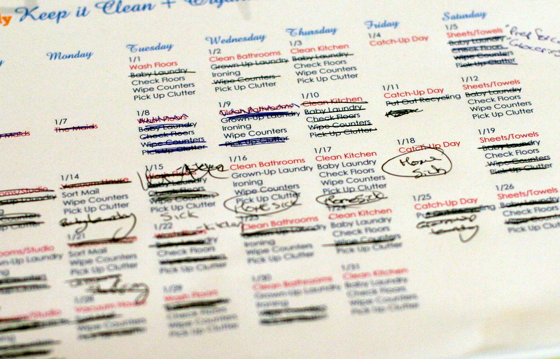 So anyway, I started looking around on Pinterest in January for ideas and strategies to help get me focused and juggle the small stuff so I could free up time to focus on the things I actually get excited about: more playtime with the baby, my hobbies, fun work projects. I stumbled across this whole subculture of (largely) Christian, homeschooling, stay-at-homes who run their households with military precision. A system for everything, a clean and tidy home, and an arsenal of creative activities with their kids. I even found a Salon article about this after I started my research. It’s a thing. Now, I happen to be the exact opposite of a Christian, homeschooling, stay-at-home mom, so obviously not everything was going to work for me. But I just needed some direction, and that’s how I found Clean Mama.