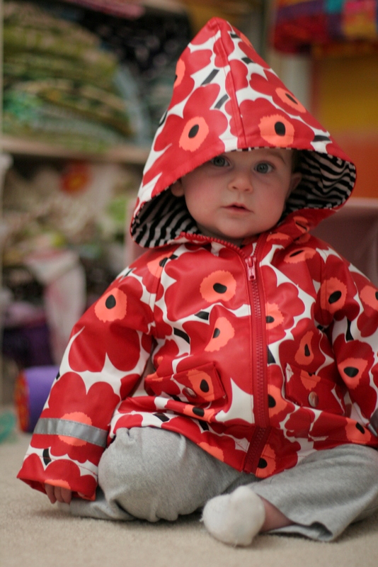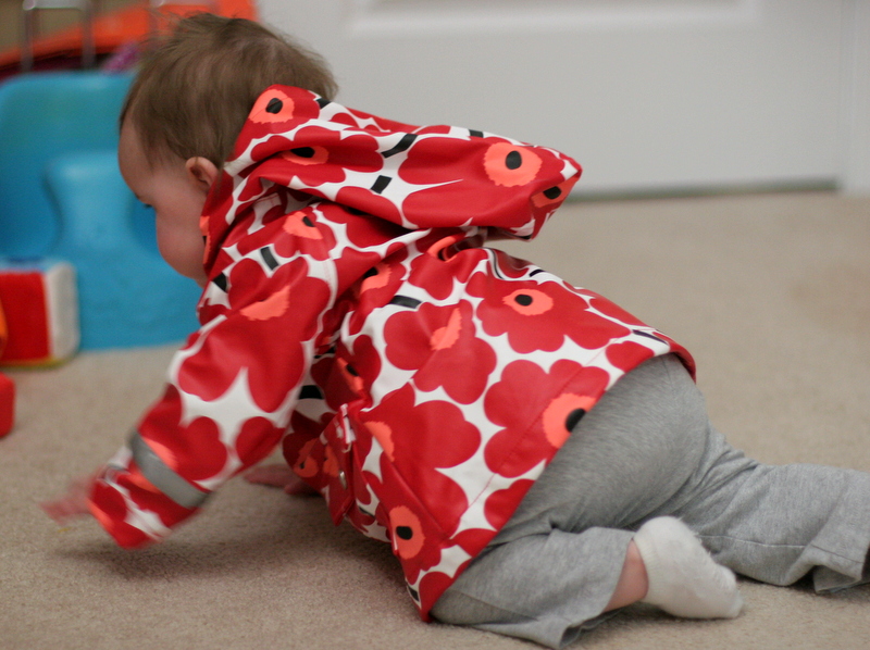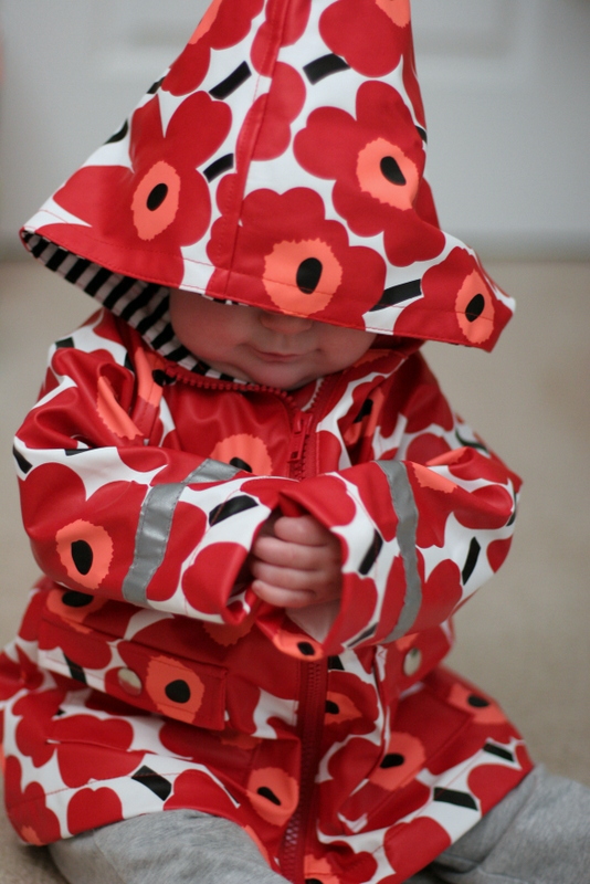 That guy. I couldn’t stop talking about the Marimekko raincoat for H, and he was going to try and get over to the store during lunch this week to get it. But then it popped up on the website (it wasn’t there when I checked), and he ordered it. And it. Is. Amazing. 12 months size, so she’ll grow into it all spring and summer. Entirely fabulous.