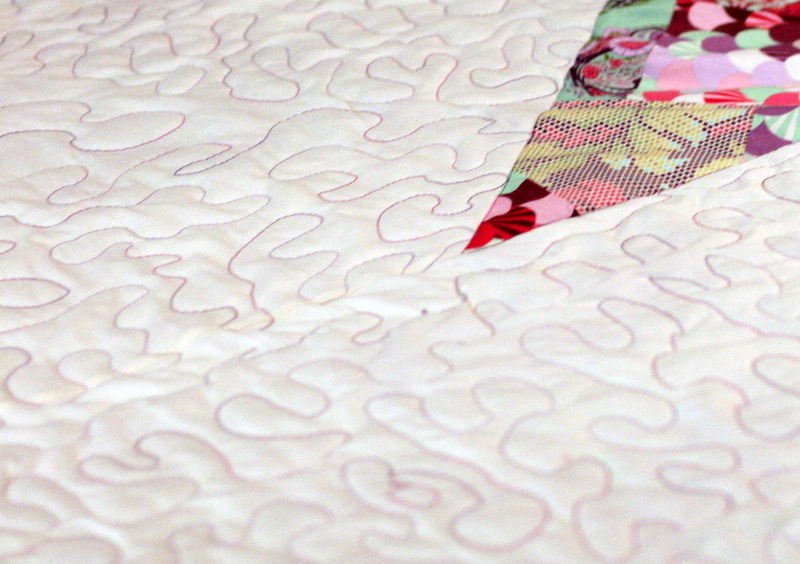 I’ve finished the quilting on this quilt and moved on to the binding, but here is a sneak peak at the quilting: