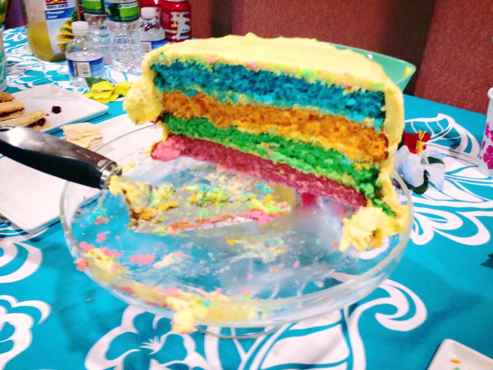 I made 4 layers in different tropical colors and a from-scratch vanilla buttercream. I’m H’s mommy, until she asks me for something else I feel like I should make her birthday cakes.
