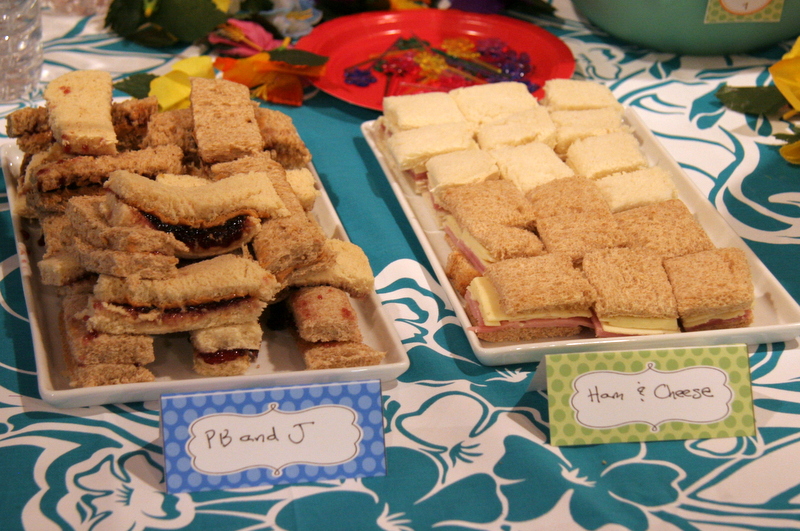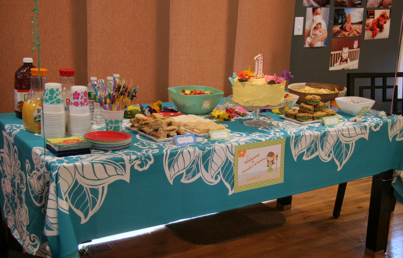 The party was only scheduled for an hour and a half, at 2pm, so I tried hard not to go over board. There were 5 little ones there and a bunch of adults, so I just did snacks and drinks. Adam made Blue Hawaiians by the pitcher on the bar.