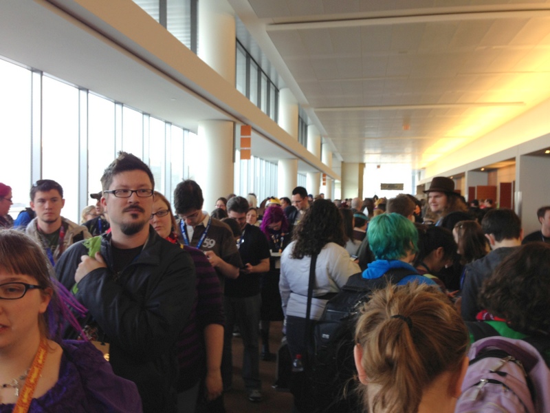 The line for the geek crafting panel was enough to make me feel at home. The people in line were so wonderful, complimenting each other and displaying their handmade costumes, scarves, hats, etc. Again, overlap.