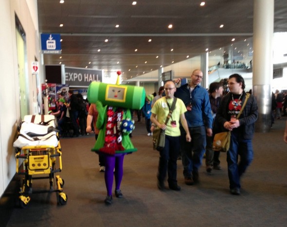 This is why we couldn’t wait to take H to PAX East this year. I have been to PAX Prime and PAX East once each before, and Adam’s been to Seattle at least one additional time without me. And again, I’ve always gone as the wife of a gamer, someone who doesn’t get the references but is up for anything. But this year, with H, I decided that I am a gamer. I’m just a gamer with a particular allegiance. But this is my community, too. And with that, I got so much more out of PAX this time. The panels I went to just backed up my sense of inclusion, and I realized that “gaming” is too small a word to describe this community. There is so much overlap between the world of PAX and that of LeakyCon, or crafting, or kid lit and YA lit. Even BlogHer. These are all just communities of tech-centered, non-mainstream creatives, and I fit right in with that.