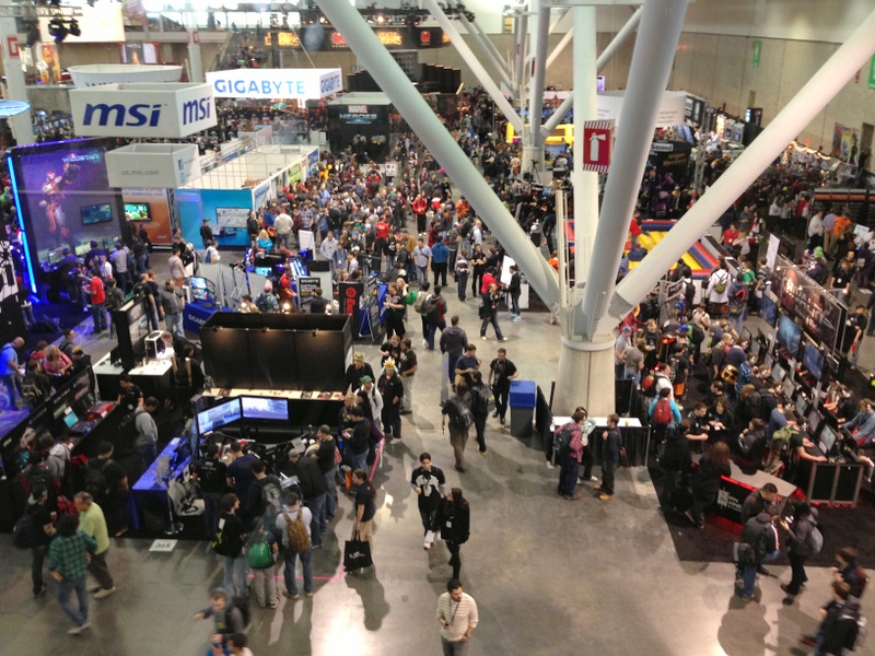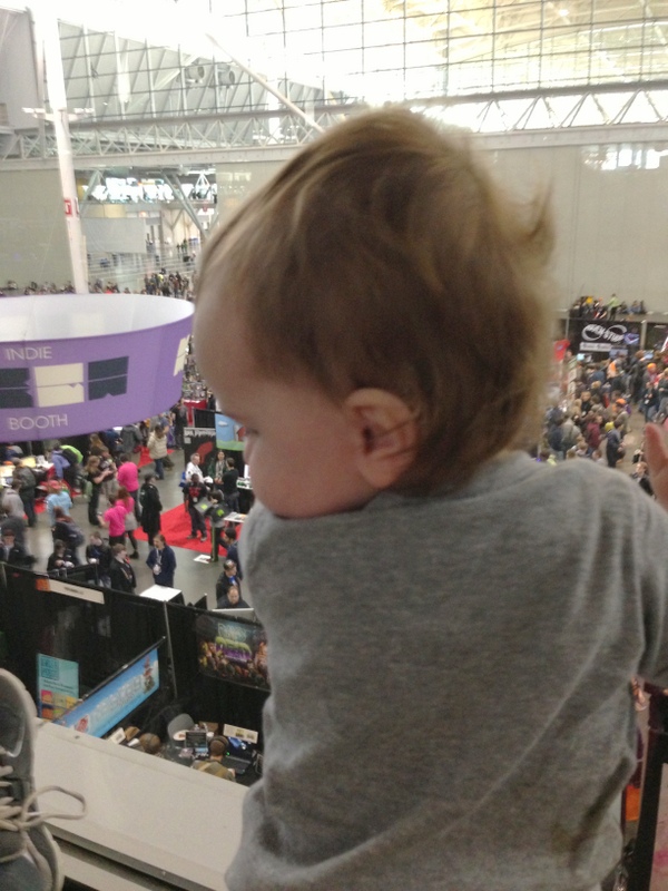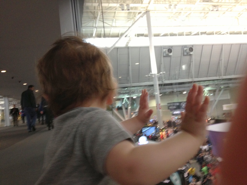 The crowds down on the show floor. We couldn’t take the stroller down there, so on the first day H and I just watched from one of the skybridges while Adam was in another panel.