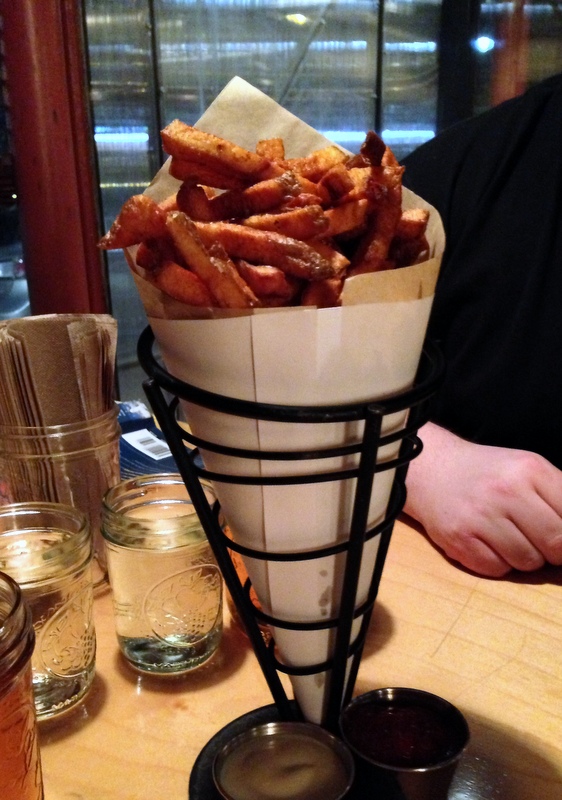 Our first night in Portland, Monday night, we made a pilgrimage to Duckfat, a place we’d heard of any time the Portland food scene was mentioned. It was behind our hotel, so as pilgrimages go it was pretty lightweight, but I could have eaten every single meal here. The duckfat fries are everything you’d think they would be, with amazing dipping sauces to choose. And there’s just something about a perfect bowl of tomato soup and a grilled cheese sandwich on a chilly night that nothing else on earth can rival. They do it right here. Ugh, it’s pouring here in NJ today…now I want that meal again.