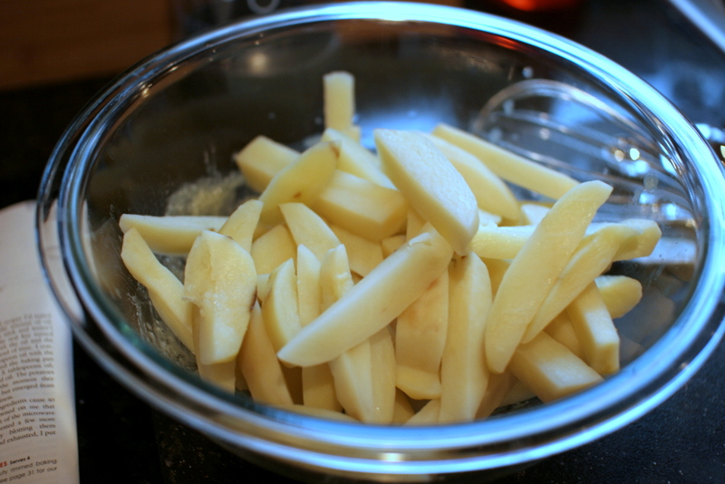 4 russet potatoes (6 to 8 ounces each), peeled and cut into 1/2-inch-thick fries