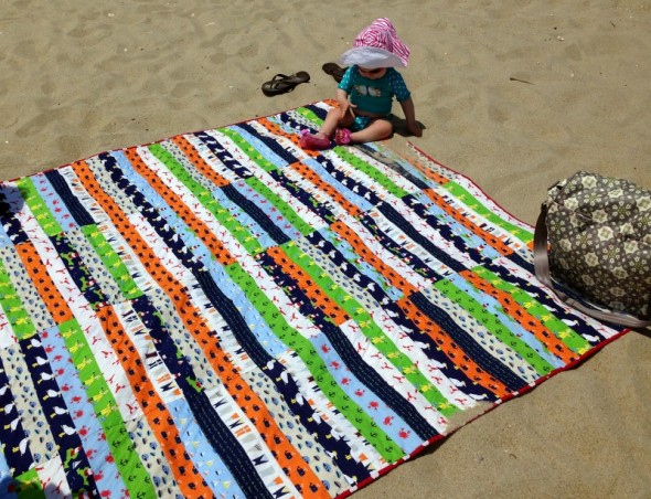 How adorable – your daughter and the quilt! And the sand will shake right off, so much better than a towel!