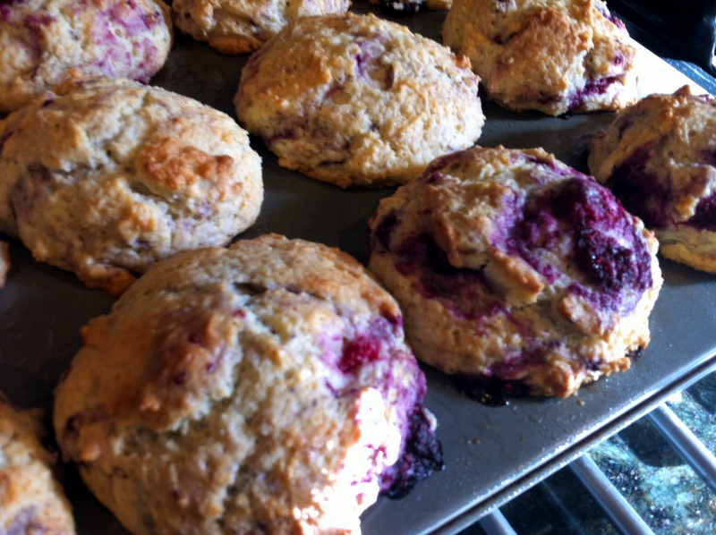 Raspberry Muffins. I made these last September (I had to check the date on the photo for that one), just swapping blue for rasp in my favorite muffin recipe. And I’ve been thinking about them all night.