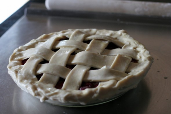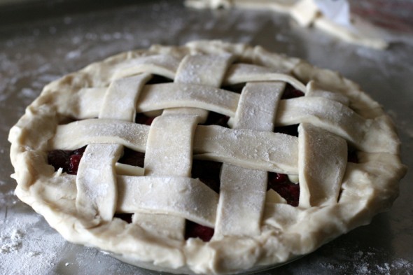 This was a Martha recipe, although in her recipe the pie didn’t have a lattice top (just a solid top with holes cut out of it). But, if you’re going to make a cherry pie I say you really need to go all the way. It was delicious, and even better with ice cream. I think I may still love sweet cherry pie a little bit more, but this tasted exactly like summer. And I was just so happy to be making a pie, I can’t believe this is my first of the year.