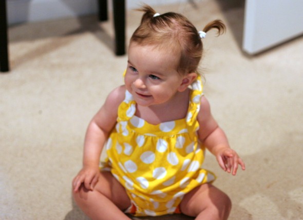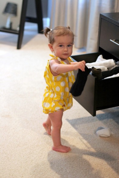 H hit the 16-month mark on Monday, and I took some photos of her. I haven’t had a chance to post them until now, but she was busy getting into all of the things. As usual. Her hair is long enough for pigtails now, which means I am officially defenseless against her cuteness. Try telling that face not to take the house apart.