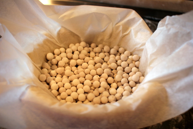 Preheat the oven to 375 degrees F. Put the tart pan on a baking sheet, line the dough with parchment paper and fill with pie weights or dried beans.