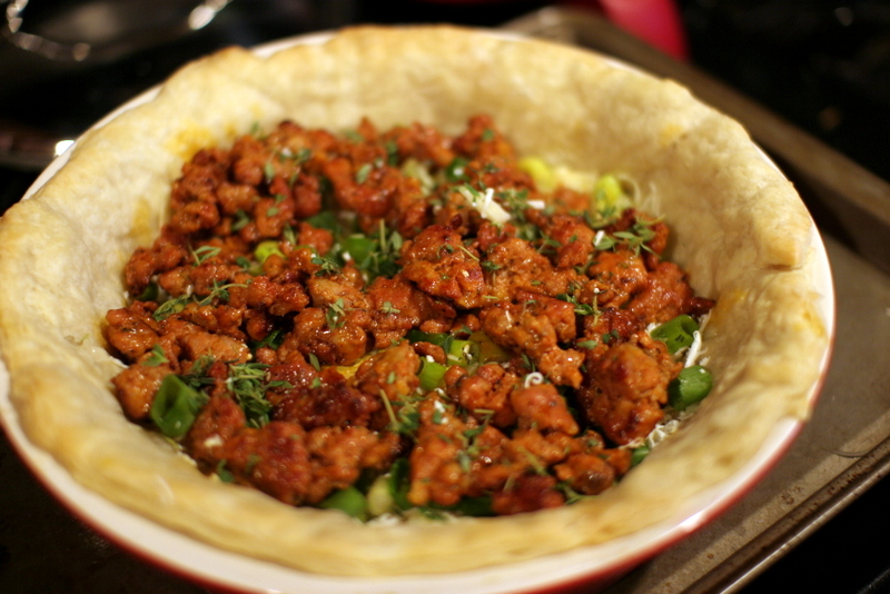 **A note here: I went to the Food Network website to find this recipe originally, and there are 2 versions of Bobby Flay’s recipe posted. One of them is just batsh*t crazy. The other is what was actually in the magazine. Guess which one I made the first time (and photographed)? It resulted in a giant inflated crust like this, which meant my fillings were full to brimming. I made this correctly on later tries, and it was perfect. And so was this one, after about 10 years of baking in the oven.