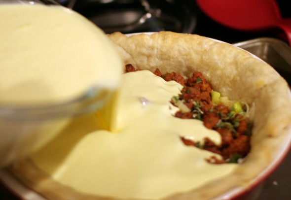 Bobby Flay’s Chorizo and Goat Cheese Quiche (from Food Network Magazine)