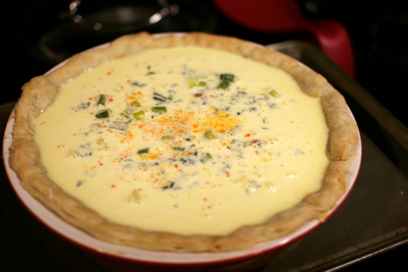 I’ve been on this whole growing-as-a-person kick in 2013, so when I saw this Bobby Flay quiche recipe in an issue of Food Network Magazine a while back I thought I’d give it a try. It has jalapeno pesto, which instantly elevated the concept from breakfast for me. And I got to prance around the kitchen telling Adam about all the cotija I used. I somehow felt like more of a gourmet with that addition.