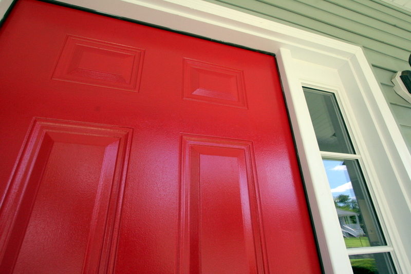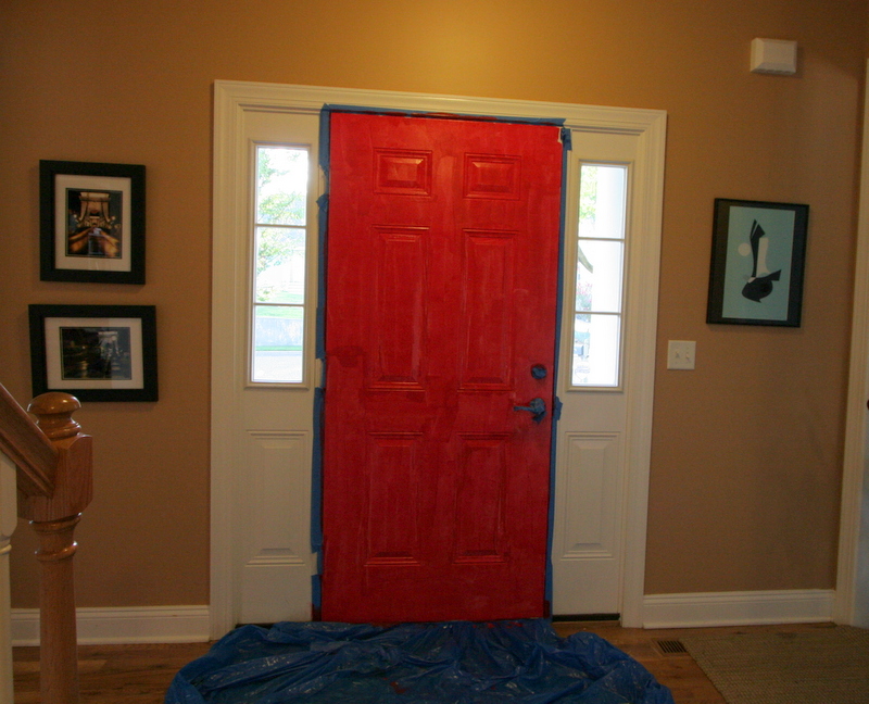 This photo above is after just one coat inside. I got 5 coats of that red on and let it dry overnight before deciding that it was actually way too brown on the inside. It wasn’t shiny enough OR red enough for me. But I wasn’t satisfied with the other reds Benjamin Moore had to offer, so after going back out in search of the perfect red I ended up with Glidden’s Candy Apple in high gloss. Three more coats of that, and the door was perfectly shiny and perfectly red. No brown here.