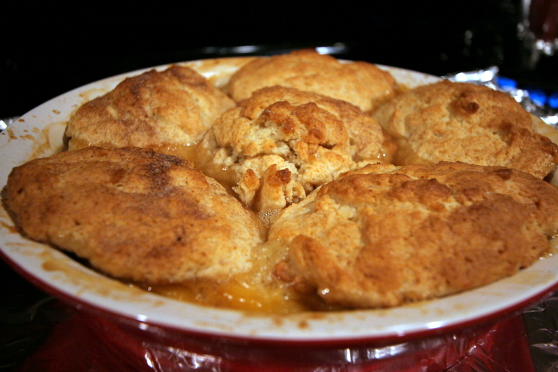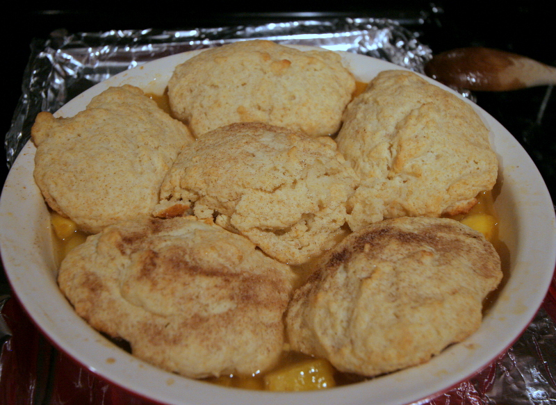 So I made cobbler. From the supremely handy and easy “Fresh Fruit Cobbler with Biscuit Topping” recipe from my favorite America’s Test Kitchen Family Baking Book, which just gives you the formula to make a cobbler with pretty much anything. And includes sassy biscuit options like cornmeal biscuits and gingered biscuits. It’s kind of idiot-proof. And really, really delicious. I might make the biscuits on their own sometime for breakfast, they were that good.