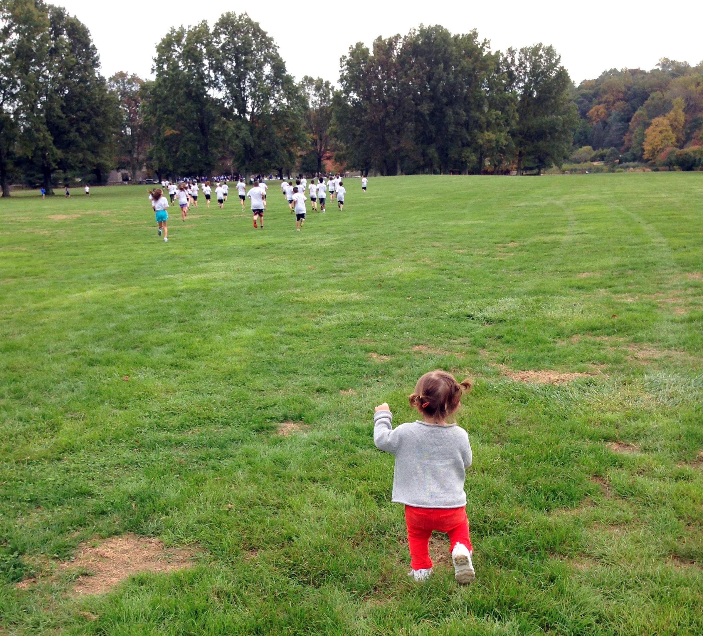 We went to our favorite big local park, and the track team was out practicing before a meet. H wanted to run, too.