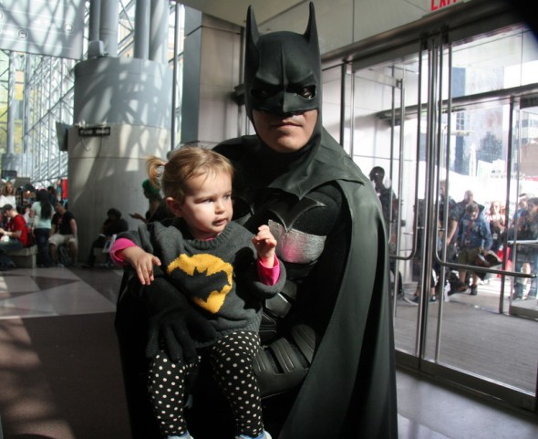 I went to NYCC last weekend, one day on my own and one day with H. She had her picture taken with Batman, who was taking his NYCC duties very seriously. H had no idea what was going on.