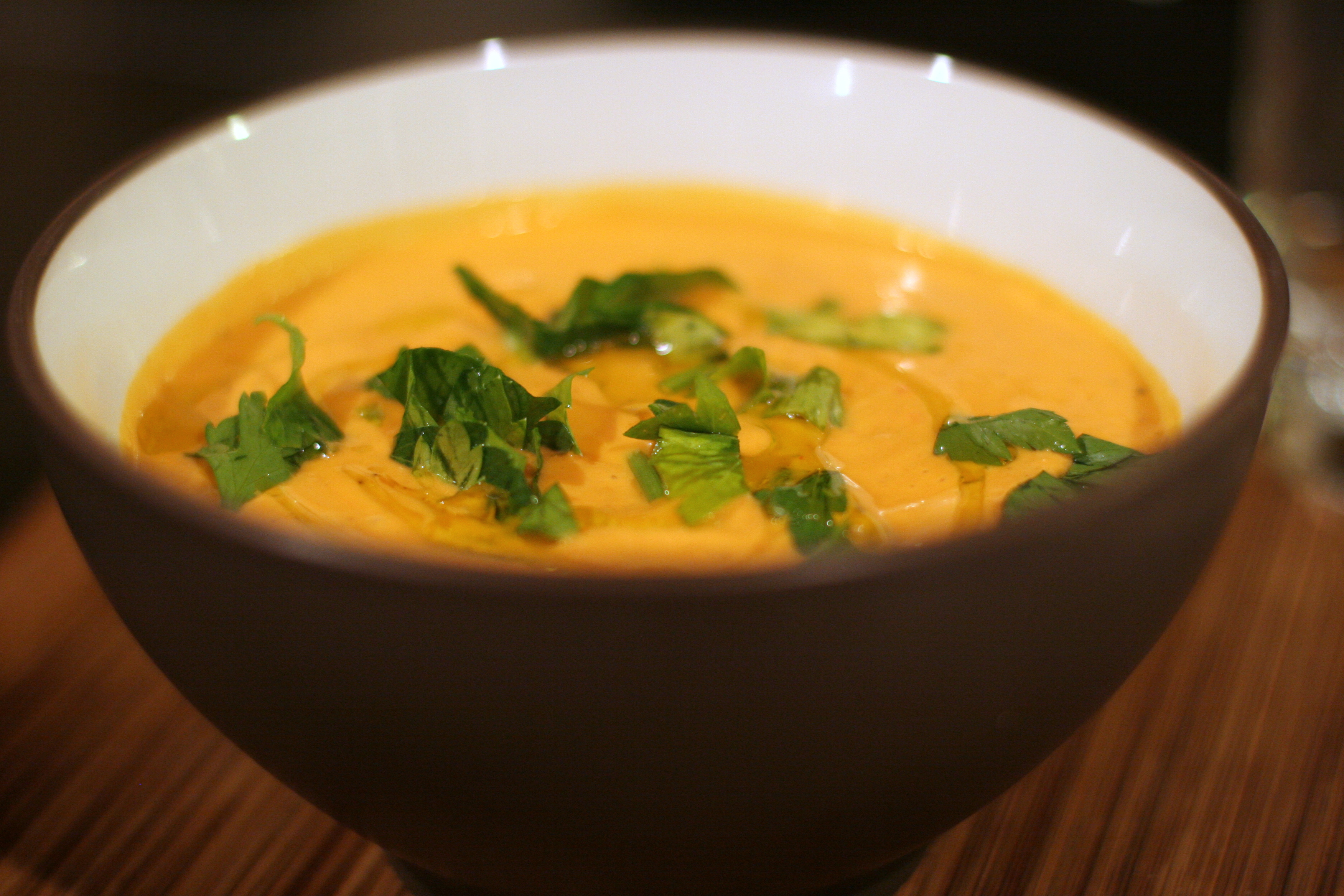 Today’s soup post is kind of a softball one, since I have one photo and it’s a summer soup. H’s in bed with a 101 fever as we speak after spending the day running around the city meeting Elmo and having adventures. I’m pretty pooped, so a one-photo soup seemed about right for today.