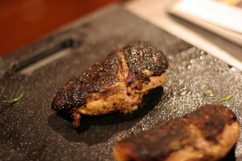 To cook the duck, preheat a griddle or frying pan over a medium heat for 1-2 minutes until hot and almost smoking. Cook the duck, skin-side down, for 5 minutes, then turn over and cook the other side for 3 minutes or until cooked. Set aside to rest for 5 minutes.
