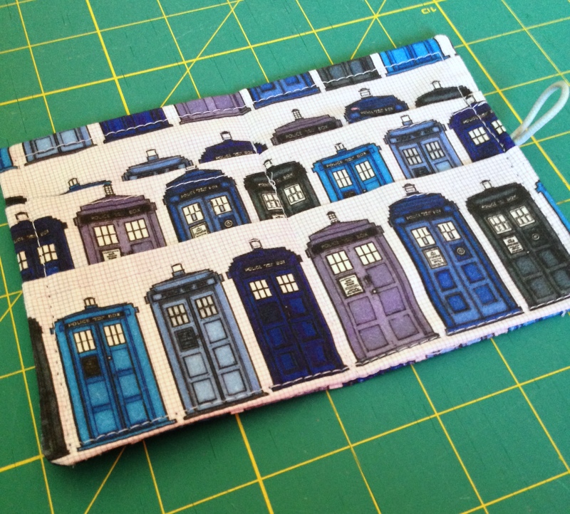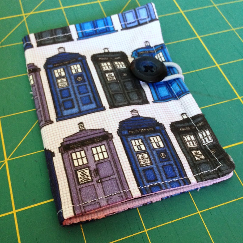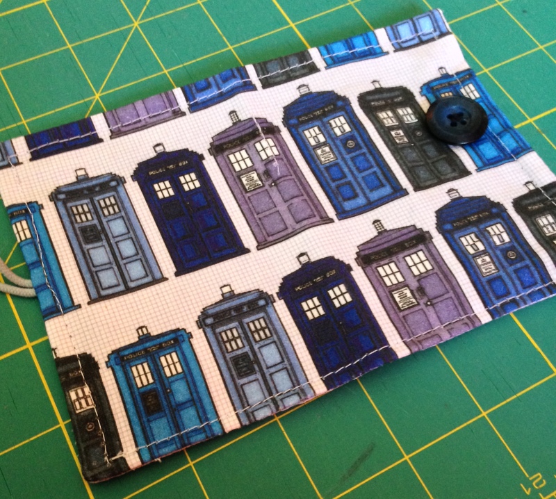 I made Adam a tea wallet from this tutorial for his Christmas stocking way back when I first started sewing and blogging. I was very proud of it, and he actually uses it. I bought this TARDIS fabric from a Spoonflower designer at the same time I designed and ordered the sound wave fabric for his, but it’s been sitting in my stash waiting for a good use for 5+ years now.