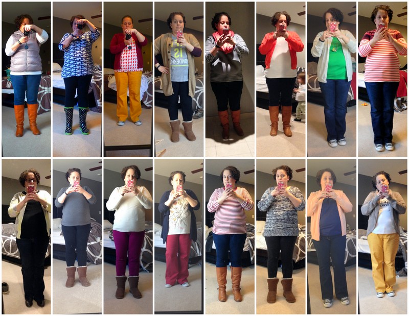 So here’s the first (half) month of my project to motivate me out of yoga pants. A few things: a) I’ve decided it would be easier to use my phone for the photos this time around, but as I do not have the steadiest of hands I’ve got more blurry photos than I anticipated. I’m working on that. b) There are a couple of these outfits that I absolutely hate, but I did not know that until I saw them in photos. So, kudos for learning stuff! c) Cardigans are still my friend. d) I really only wear, like, 3 pairs of shoes during the winter.