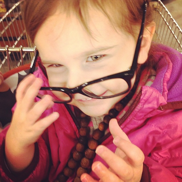 - Did the week’s grocery shopping with H. We played one of our favorite games, “Clark Kent Superman.” How to play: Your toddler steals your glasses and tries to put them on her own face. Helping her get them on is a legal maneuver. When the glasses are on, you say, “Clark Kent!” When the glasses come off a millisecond later, you say, “Superman!” Repeat, repeat, repeat. Until you need your glasses again to see. Take photos of the shenanigans like the one above.