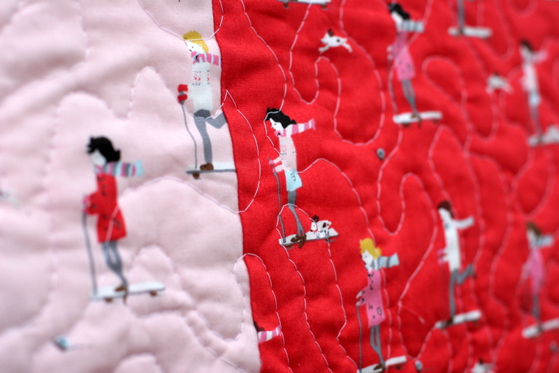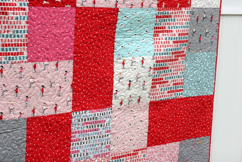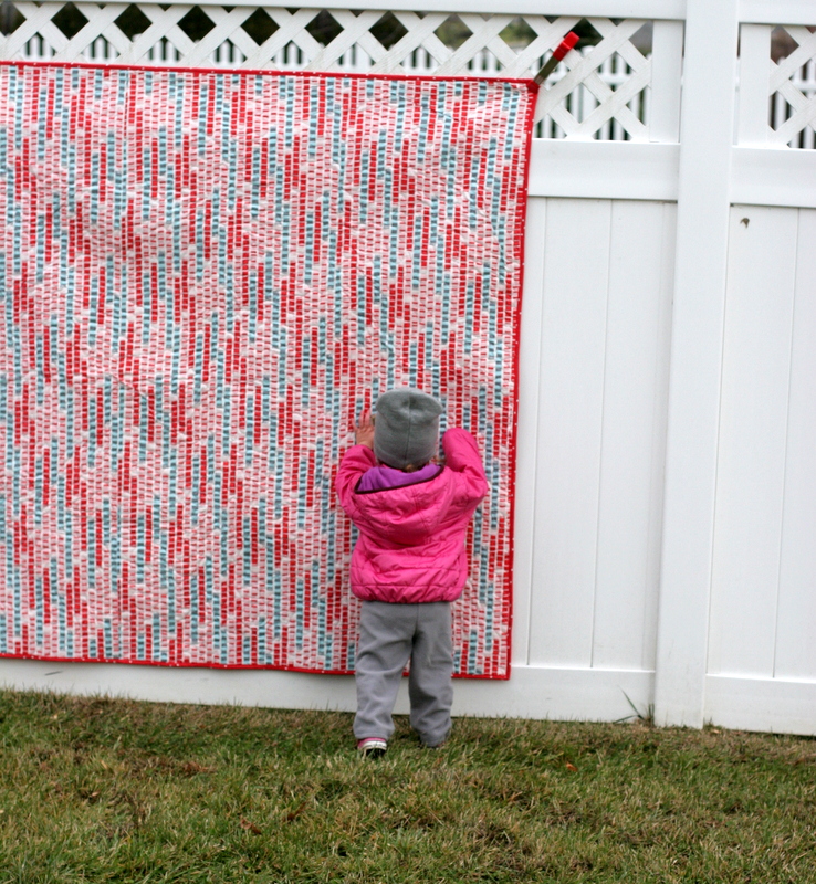 I think the red could be arranged a little more thoughtfully, but I still think this is a great wintry quilt. I have a nearly-two-year-old who thinks it’s pretty great, too. Works for me!