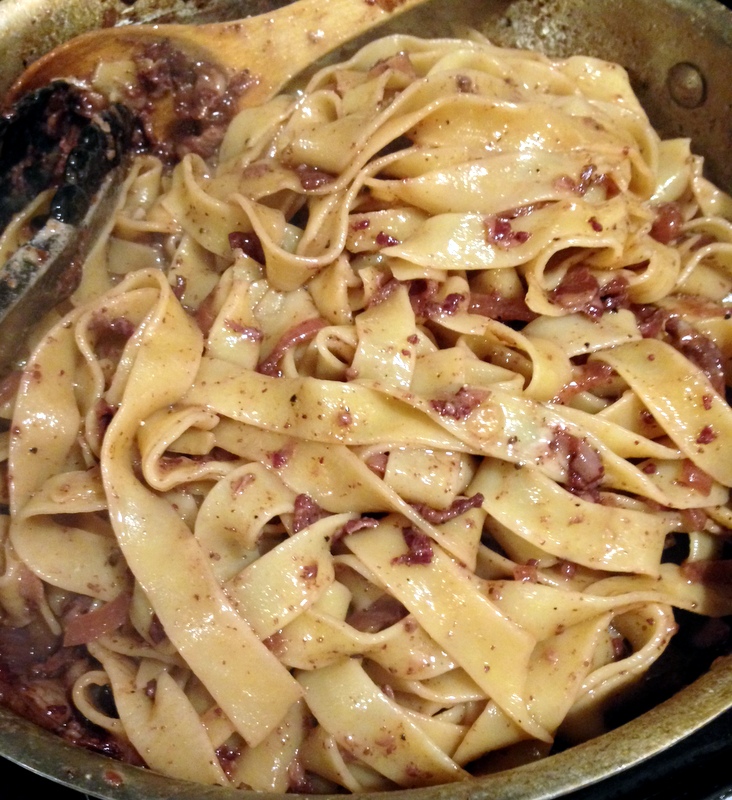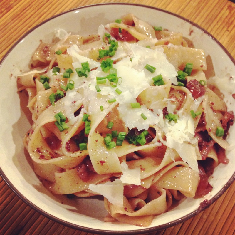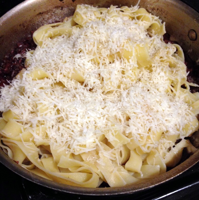 Chianti. Pappardelle. Parmesan. Pancetta. Onion. That’s pretty much it for this dish, but somehow heat and seasoning can just work their magic and turn the simplest of ingredients into something so incredibly delicious. This is why I am obsessed with Italian food, and especially PASTA. There are just endless amazing ways to elevate humble pasta, and most of them are fast.