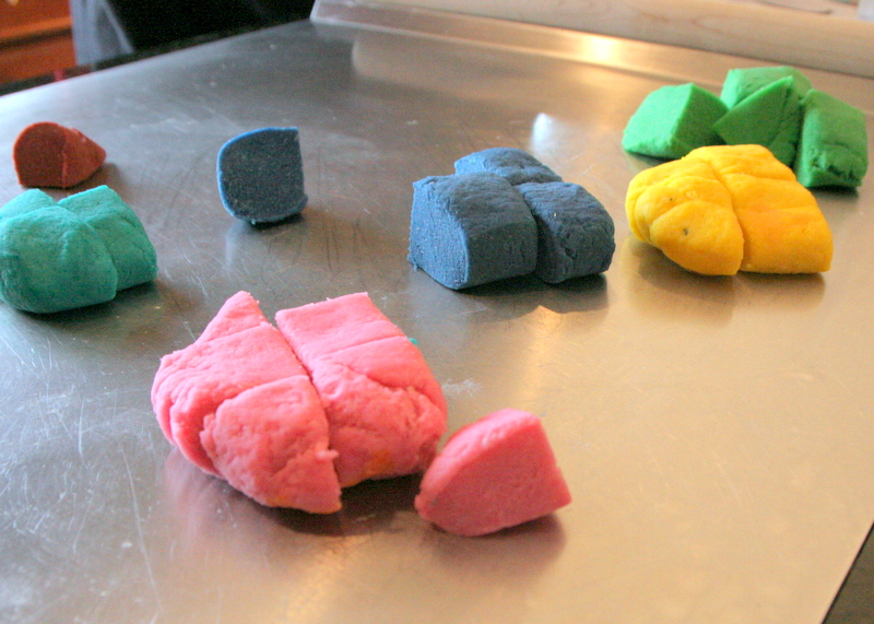 birthdaydoughI made homemade playdough in six colors for the favors. I was so excited about the favors; I got white boxes with handles and filled each with 4 colors of homemade dough, these great nonstick child rolling pins, and a teapot cookie cutter to fit the party theme. Not including the cost of the dough, which was just made with ingredients I always have on hand, the favors came in around $3.75 each. I thought that wasn’t bad, and it wasn’t candy or disposable junk.