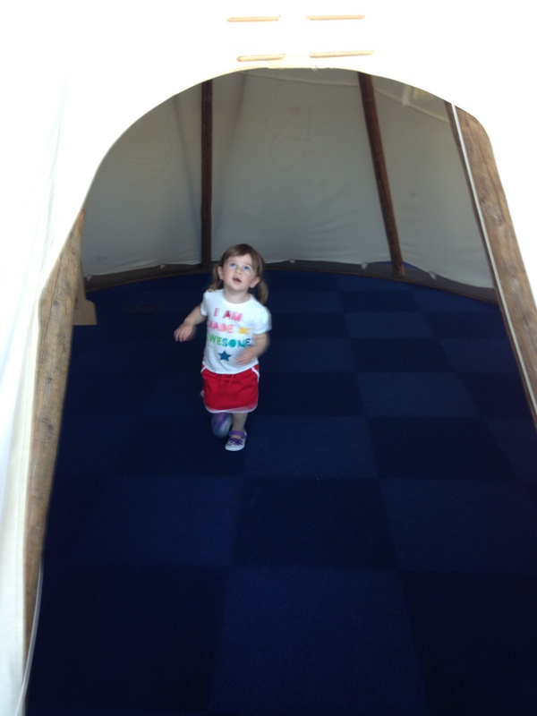 H’s favorite part of the children’s area was this giant teepee. H as a big tent to play in at home, and she was very impressed with the size of this one.