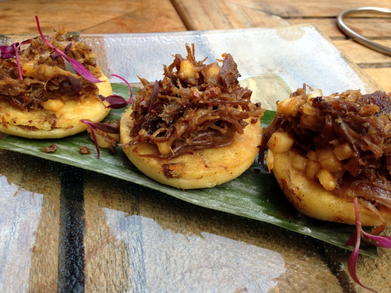 We had another great meal Sunday night at Jose Andres’ restaurant Oyamel. It was seriously, completely delicious. The most amazing queso fundido. Delicious scallops. And these morsels of duck confit on masa cakes.
