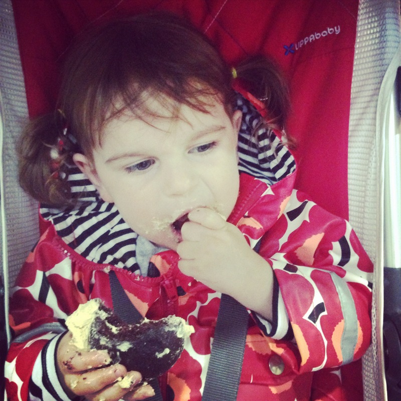 I bought H a little wheely suitcase she tried to make off with from a toy store there; you’re sort of left with little choice when your toddler drags it across the still-dirty-from-yesterday’s-rain floor and then attempts to run out of the store with it. I consoled myself by buying some local pepperoni and cheddar cheese from the smoke shop.