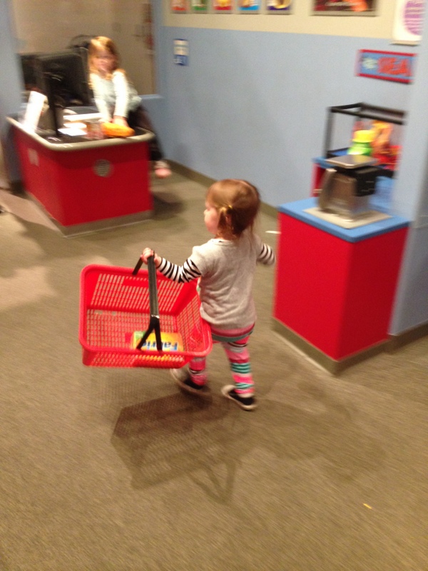 It was a perfectly manageable, really creative hands-on museum for kids. With a corner grocery for H to do all her shopping.