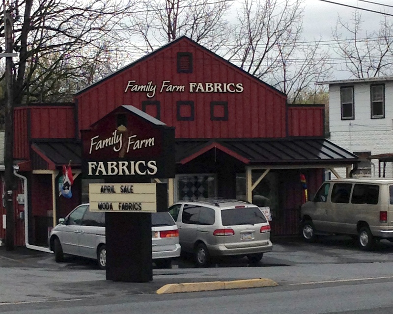 This truly wore her out, and she passed out in the car while we were still in the parking lot. So I decided to let her sleep and do some driving out to fabric stores. We were on our way to Goodville Fabric Outlet when we drove past Family Farm Fabrics. They were having an April sale, all Moda fabrics were $7.75/yard!!