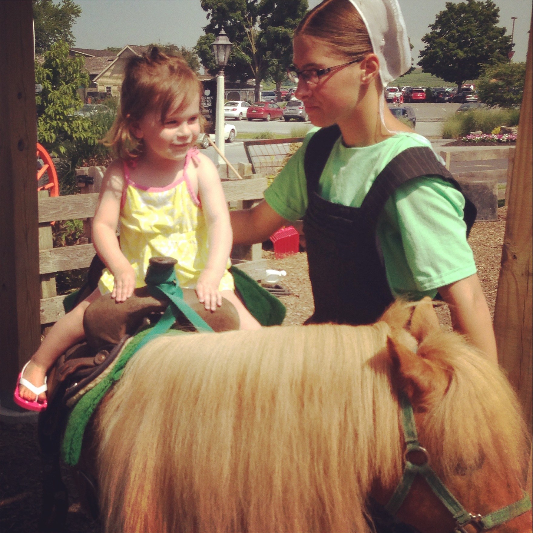 H had a pony ride at the Kitchen Kettle petting zoo. We also fed the animals and said “hi” to many of them. Then we went back to the room so she and my mom could have naps, as you do. And, okay fine, I fell asleep as well.