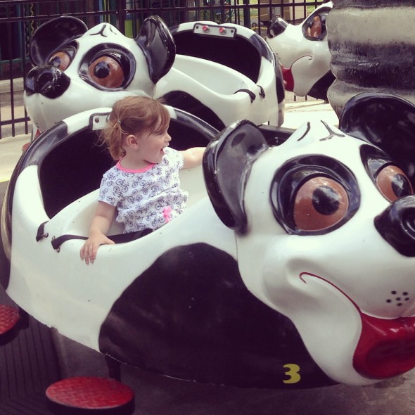The last thing we did, after loading the handy cooler I’d brought for all the food stuffs, was take H to Dutch Wonderland. Highly, highly recommend it for baby humans. She could ride a couple dozen of the rides, and most of them without an adult. Which she loved, independent little creature that she is.