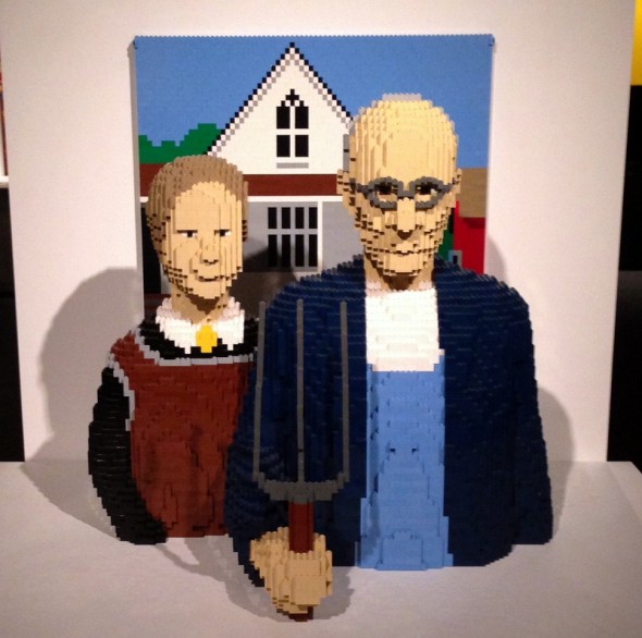After the movie and the toy preview, Adam and I had date night and stayed in a hotel in Manhattan. We walked around Midtown all evening, had a yummy Thai dinner at One Chef Thai, and went to Discovery Times Square’s The Art of the Brick exhibit. Nathan Sawaya’s Lego recreations of famous art pieces were the best thing about the exhibit, and they were so worth a visit. Some of his original Lego stuff was incredibly heavy-handed with the symbolism and Meaning Of Life references. Not our favorite. But he also has this great section of photographs where one item in the photo has been made out of Lego and worked into a composition–a red dress, a cloud. The photos and the Lego pieces were on display, and those were incredible.