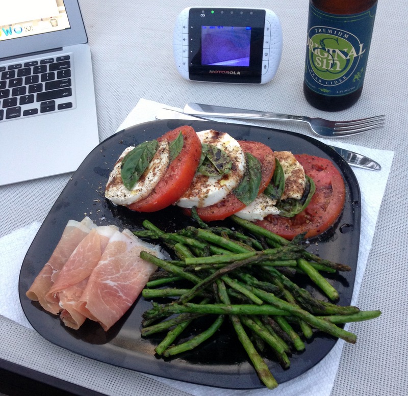 I’ve even made some time for myself to enjoy dinner out on the patio. Adam was out at a baseball game with work a couple of Fridays ago, and I managed to get a very tired H to bed rather early. So I pigged out on a glorious, quiet meal outside with my laptop and an adult beverage. That was bliss…until the mosquitoes came out.