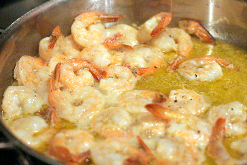 Add the shrimp and all its marinade, stir a couple of times, and turn the heat down to medium low.