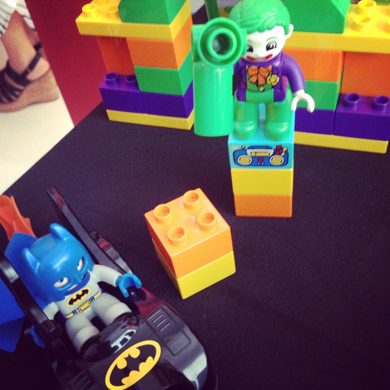 Also, DC has come to Duplo! Look at that adorable little Batman in his batmobile! And a happy little Joker. At least one of the sets has Catwoman, but she was too busy to come to this show.
