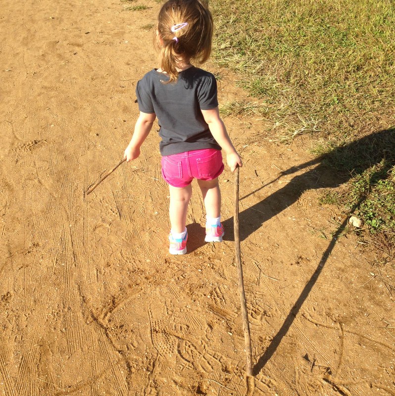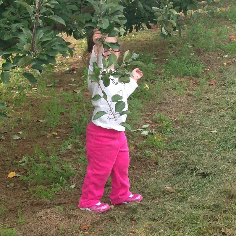 H wanted no part of apple picking. She just wanted to draw in the dirt with a stick.