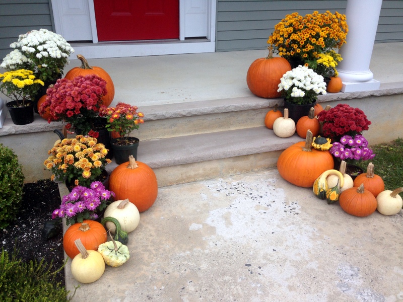 Love our front porch this year. I skipped the bats and ghosts and bunting this time. We loaded up on mums and pumpkins and just decorated the front steps.