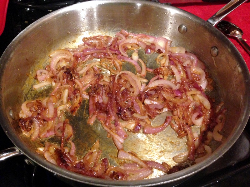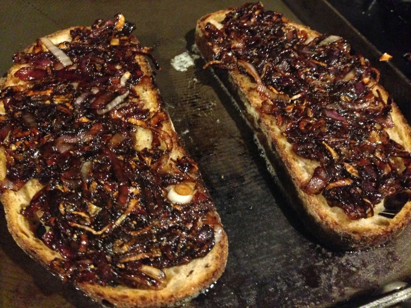 Spread with a thick layer of the “jammy onions” (about 2 Tbsp per sandwich).