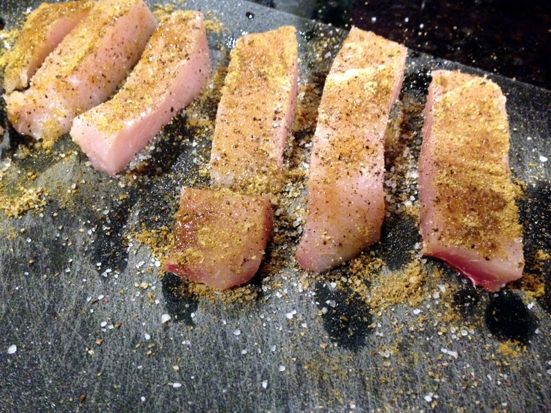 1.5 lbs mahi mahi, swordfish, or cod – cut it into 12 equal pieces