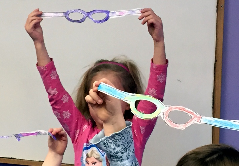 After we read Goggles, we made…goggles. I didn’t have enough cardstock, so we used regular paper. Next year, cardstock.