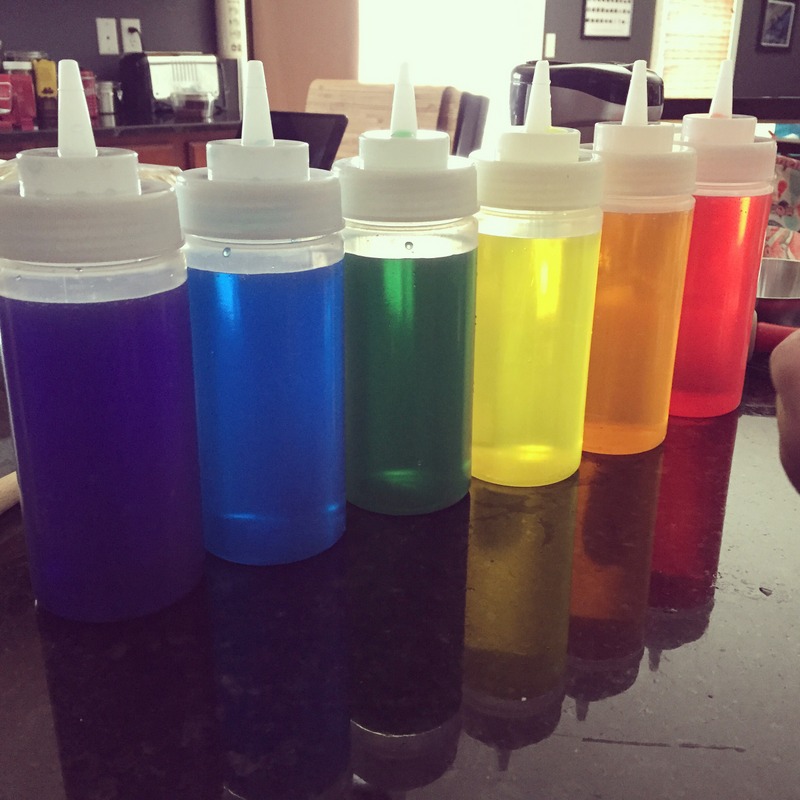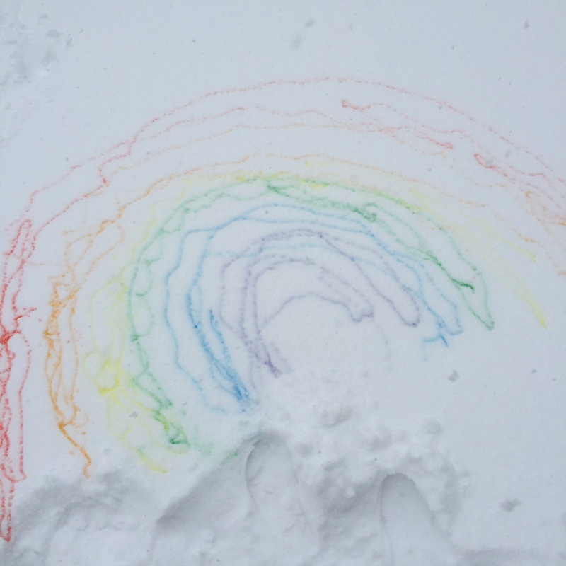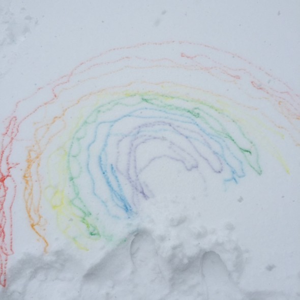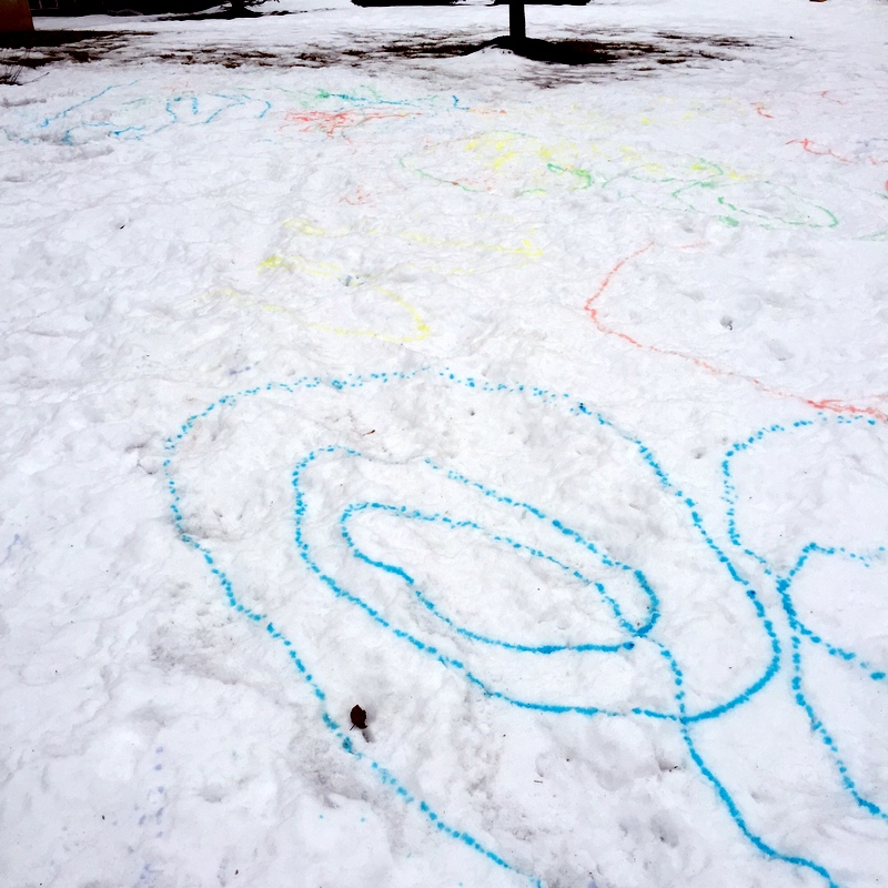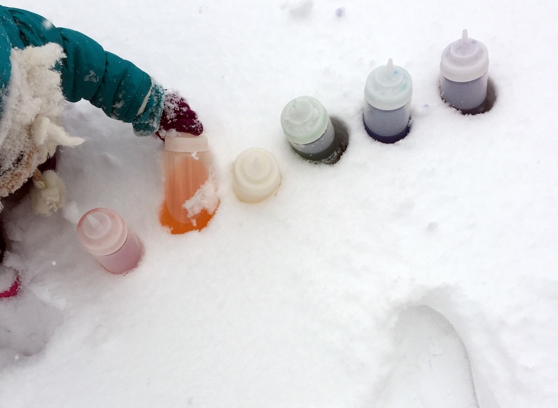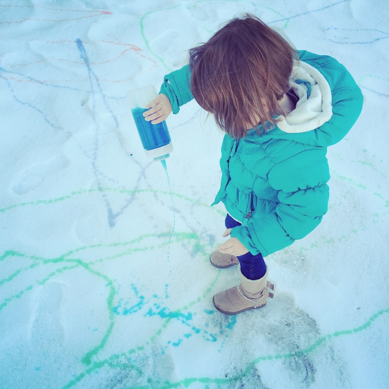 Snow painting is literally just taking water and food coloring and putting it into squeeze bottles.