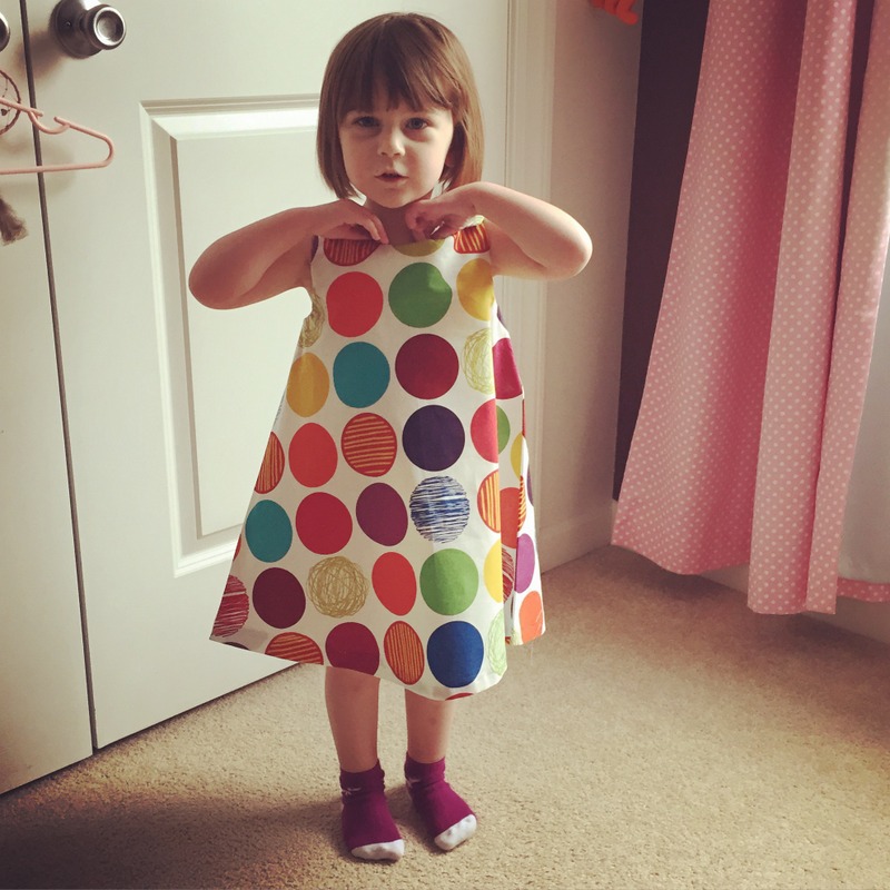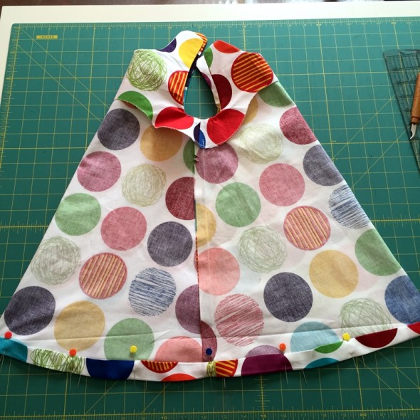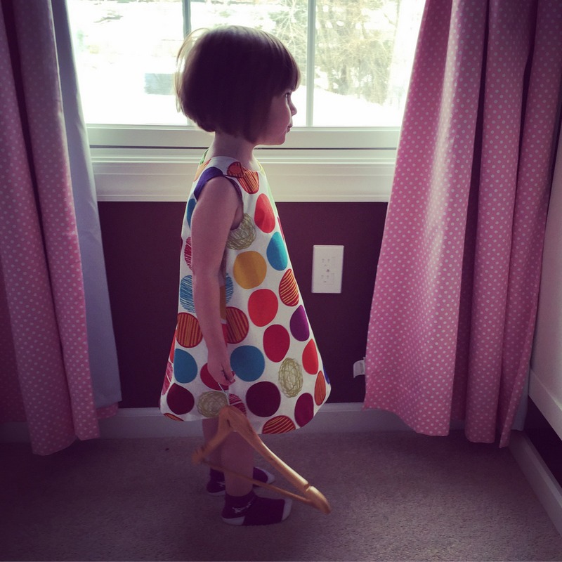I added maybe an inch on to the longest pattern length, and it’s a smidge long at the moment but I figured she’ll grow into it by summer. Maybe I’ll take the hem out and do it again 1/2″ or so shorter in June if it’s still too long. It may shrink a bit when I wash it, too.