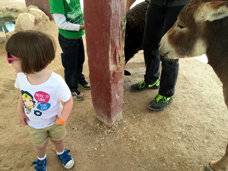 We also took H to Bonnie Springs Ranch, just a few miles away from the canyon. That was a wacky place with an old timey western town complete with gun show and really unethical-looking petting zoo. We were anxious to find a place for H to ride a horse, and she did love petting the animals.